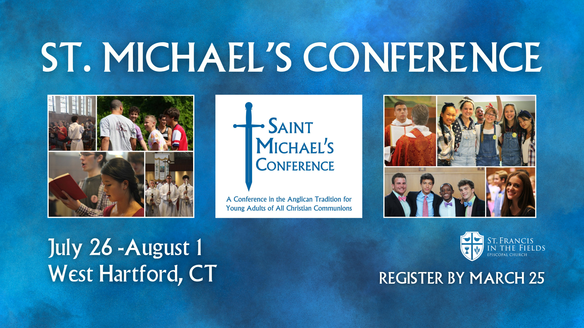 Saint Michael’s Conference is a week-long summer conference that centers on worship, discussion, recreation, and relaxation, so young adults can seek a clearer vision of God in Christ. This once-a-year camp takes place in West Hartford, Connecticut, and gathers Anglican high schoolers and college students from all over the country. This year, the Conference is from July 26 to August 1, and we will send a group from St. Francis in the Fields.